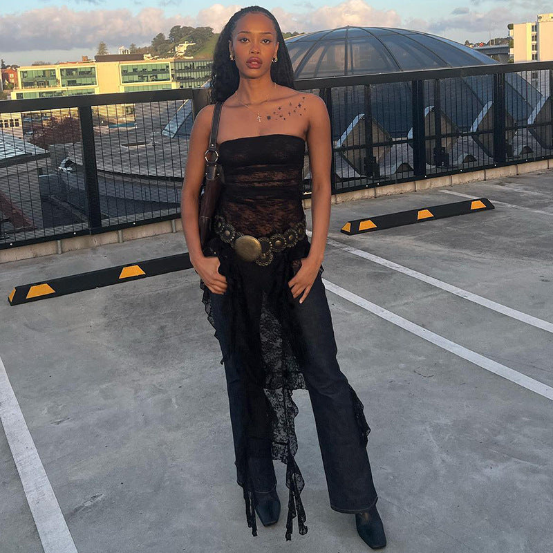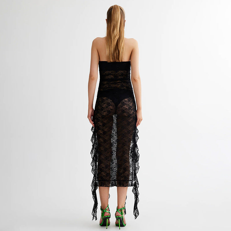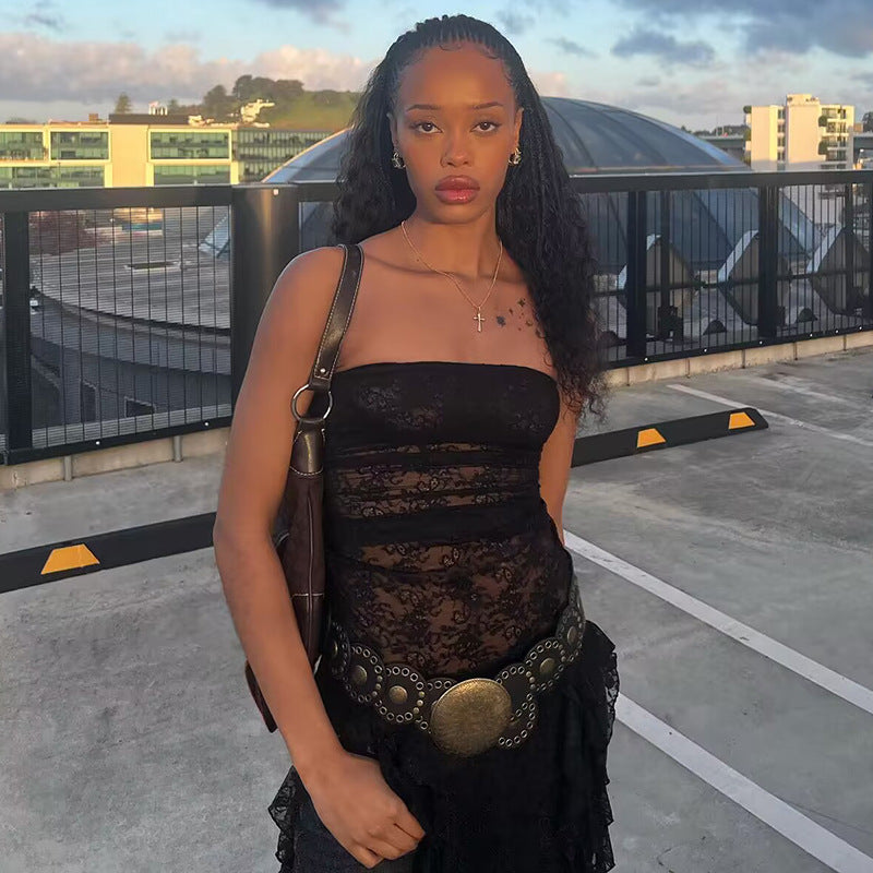 Women's fashionable sexy one-shoulder tube top dress with stitching